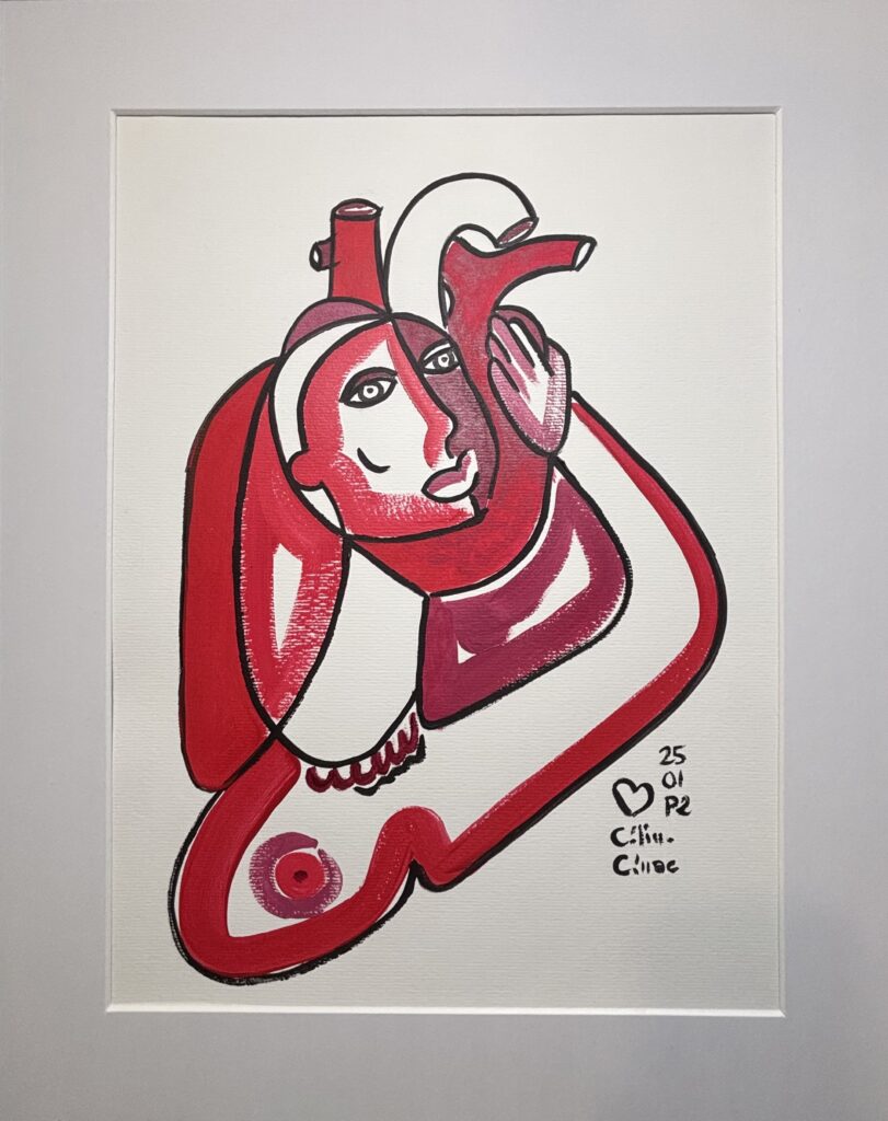 Dans ses séries les plus marquantes, l’artiste détourne les expressions populaires pour en faire des tableaux puissants, sensoriels, où le cœur devient matière, motif, symbole. Chaque toile s’adresse à ce qui palpite en nous. Derrière l’esthétique, c’est une parole silencieuse mais intense qui émerge : celle de femmes en lutte, en rupture, en lumière.