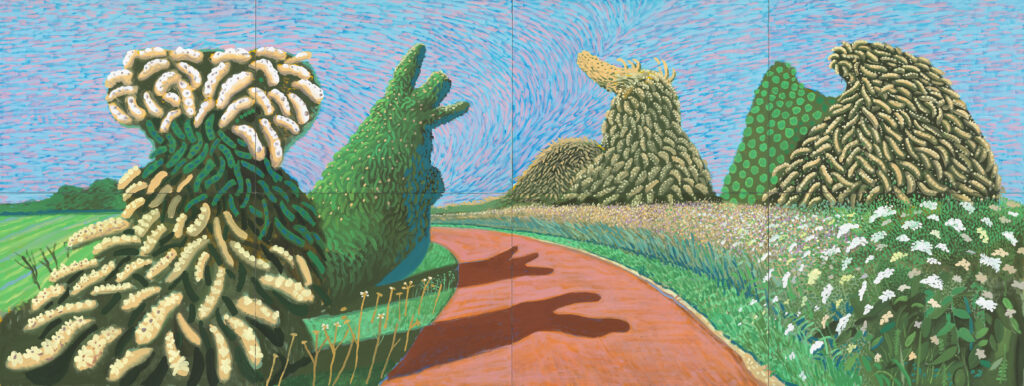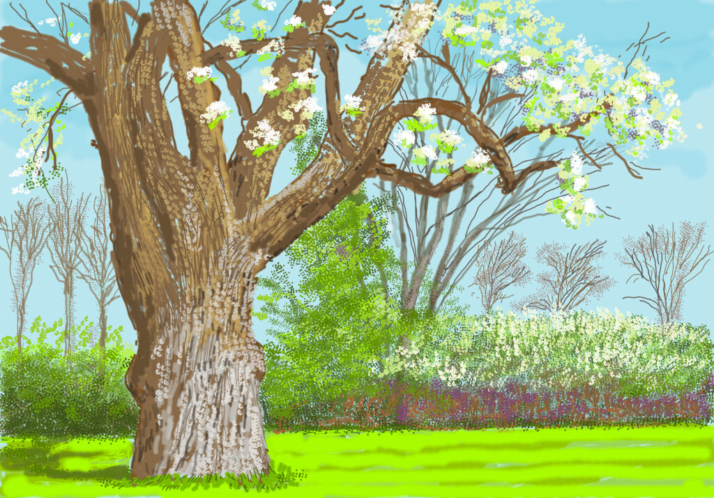 Ce qui distingue particulièrement cette exposition est l’incorporation des technologies modernes dans l’œuvre de Hockney. L’artiste, qui a toujours été à l’avant-garde de l’utilisation des nouveaux médias, présente des œuvres réalisées sur iPad et des installations vidéo, témoignant de son passage fluide du pinceau à l’écran tactile. Ces œuvres numériques, réalisées dans les dernières années, démontrent son habileté à adopter et à maîtriser de nouveaux outils pour la création artistique.