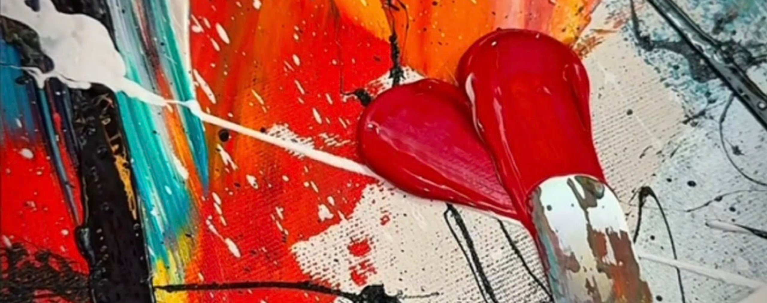 Spontaneous gestures and strong chromatic contrasts generate immersive compositions that capture the viewer’s attention.