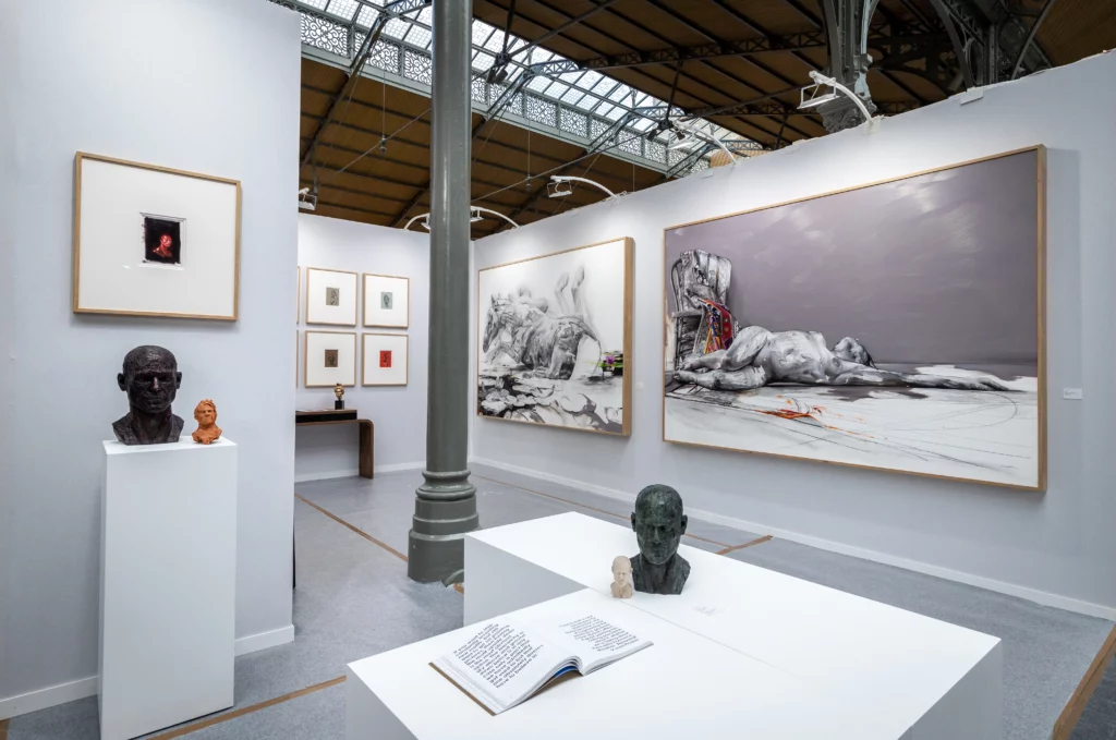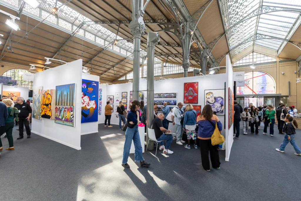 The fair takes place at the Carreau du Temple in Paris, a cultural venue located in the heart of the Marais district and known for hosting major contemporary art events.