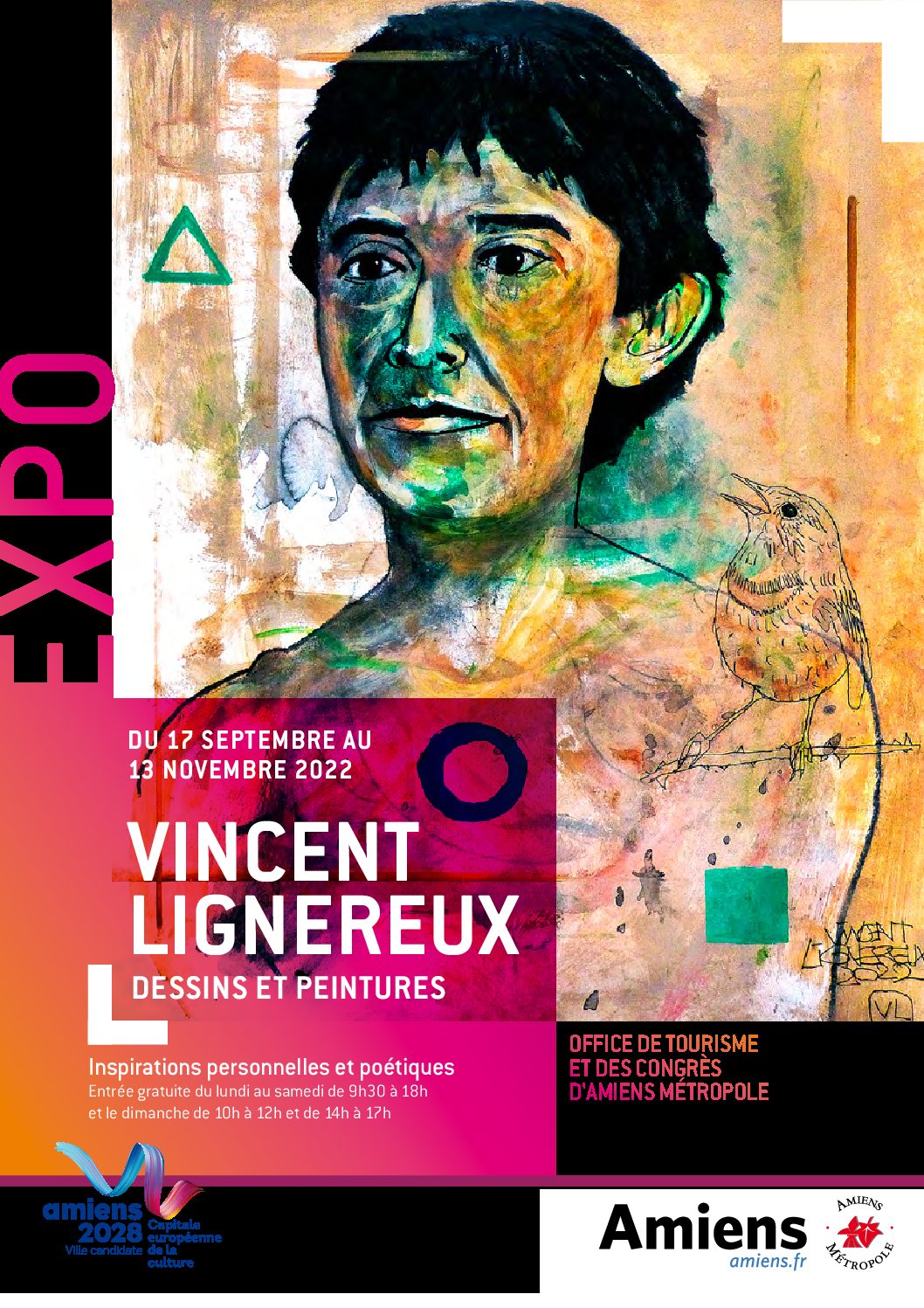 Vincent Lignereux, dessins et peintures, sera visible à l’accueil de l’Office de Tourisme, au 23 place Notre-Dame, du 17 septembre au 13 novembre 2023. Cette exposition reflètera les inspirations personnelles et poétiques de l’artiste, parmi lesquelles Amiens tient une place particulière.