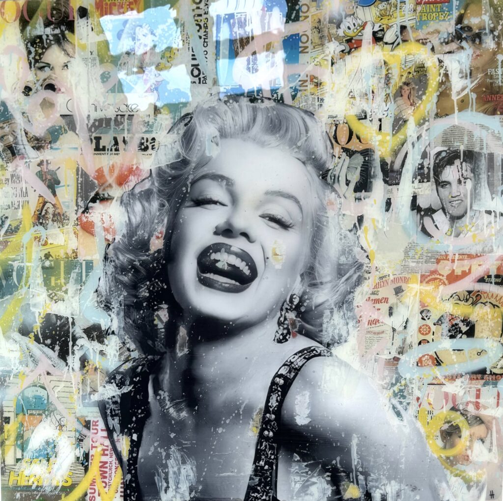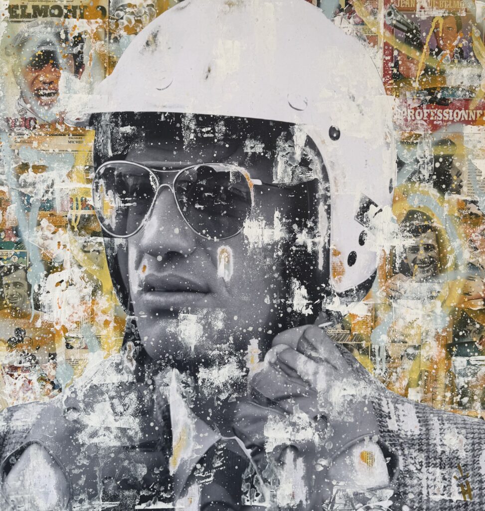 À mi-chemin entre collage rétro et peinture urbaine, Hugo Mucciante brouille les frontières entre passé et contemporain. Ses compositions capturent une actrice culte, un poster oublié, un regard saisissant, ou encore un air de chanson qui surgit sans prévenir. Chaque toile est une capsule temporelle, mêlant nostalgie et vitalité dans un équilibre précis.