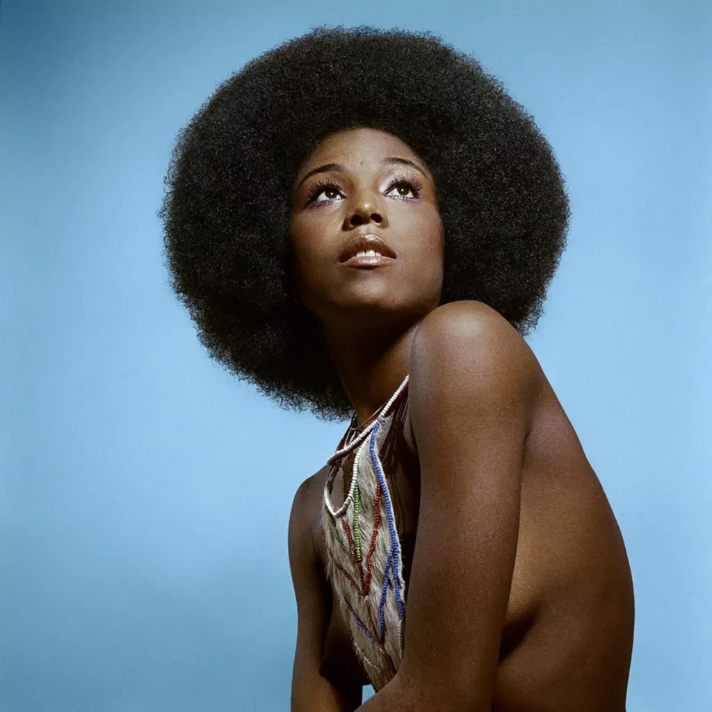 © Kwame Brathwaite Radiah Frye, un mannequin ayant adopté les coiffures naturelles lors d’une séance photo aux studios AJASS Vers 1970, tirage pigmentaire, 76,2 × 76,2 cm Courtesy of the Kwame Brathwaite Archive and Philip Martin Gallery, Los Angeles