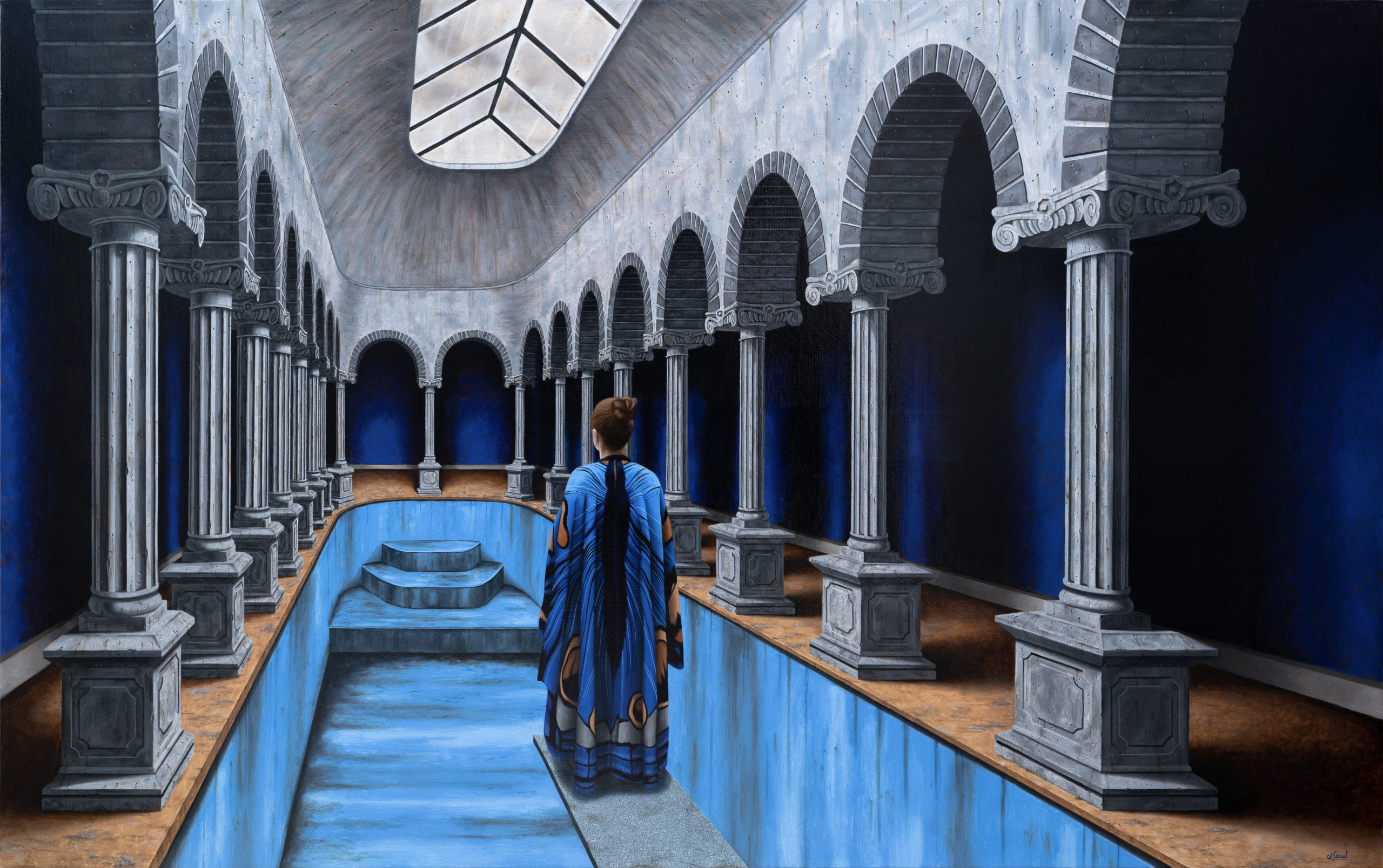 L’influence des maîtres tels que J.L. David, Vermeer, Van Eyck, Nicolas Poussin, Rembrandt et Caravage est clairement perceptible dans ses œuvres. Il maîtrise la composition, la lumière et l’exécution de manière à créer des tableaux qui captivent l’observateur et l’invitent à une exploration plus profonde de l’âme humaine.