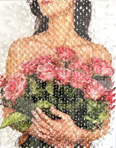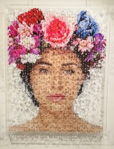 Les fleurs sont un des éléments que l’on ne peut dissocier des œuvres de l’artiste, c’est devenu sa signature. Les papillons viendront un peu plus tard lors d’une visite de serre à papillons. En voyant tous ces papillons colorés autour de lui, il les imagine se figer et former des silhouettes abstraites dans un premier temps. Ensuite, l’idée a fait son bout de chemin dans l’esprit de l’artiste et ces silhouettes devinrent des personnages fictifs puis des portraits réalistes que l’on connaît aujourd’hui.